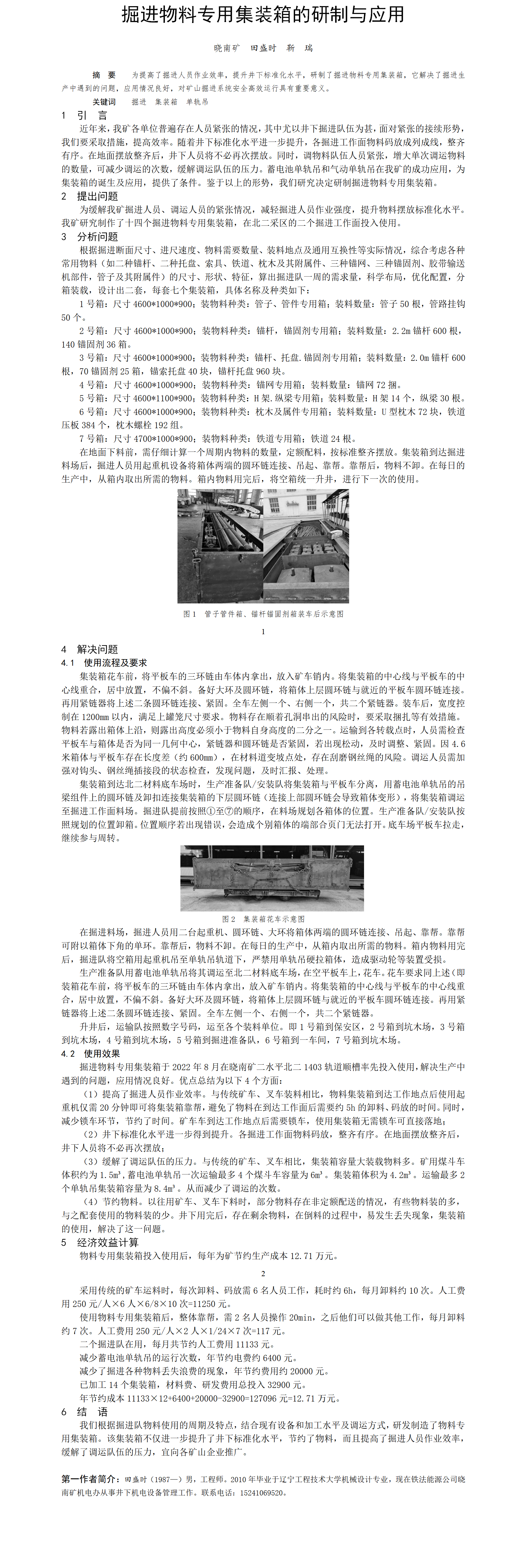 第60屆等級獎論文---淺析掘進工作面運料集裝箱的應用實踐