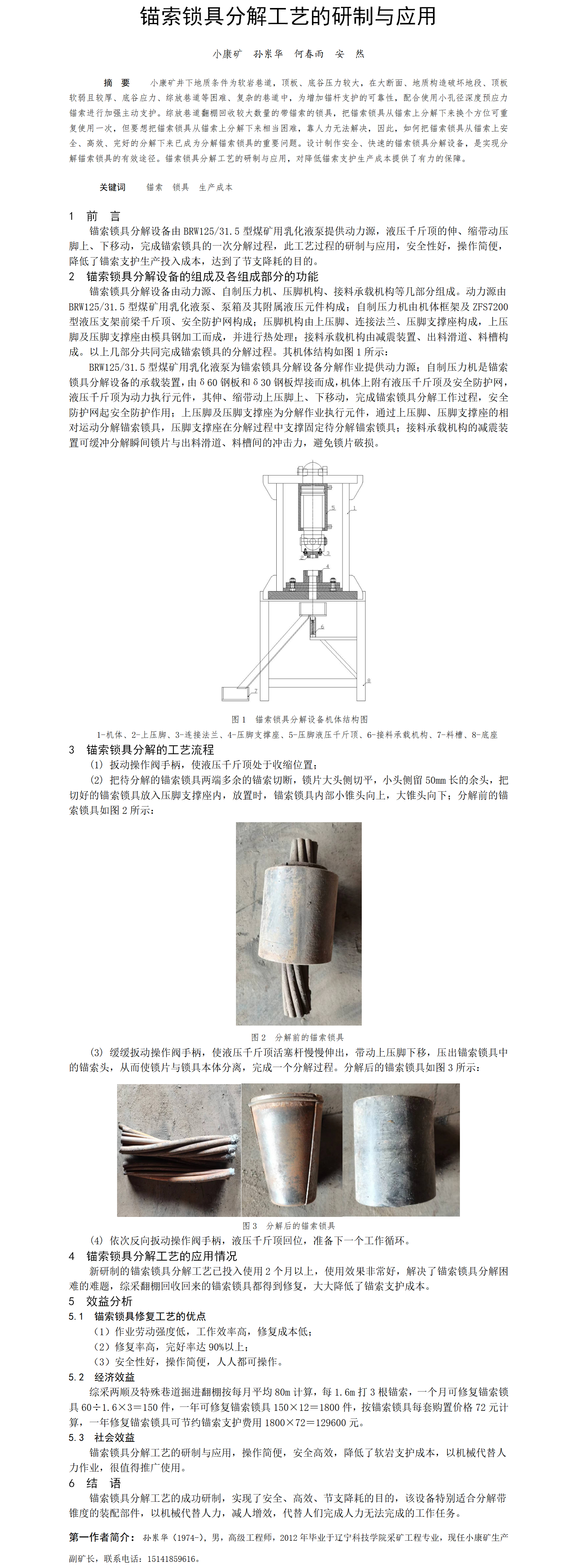 第60屆等級(jí)獎(jiǎng)?wù)撐?--錨索鎖具分解工藝的研制與應(yīng)用