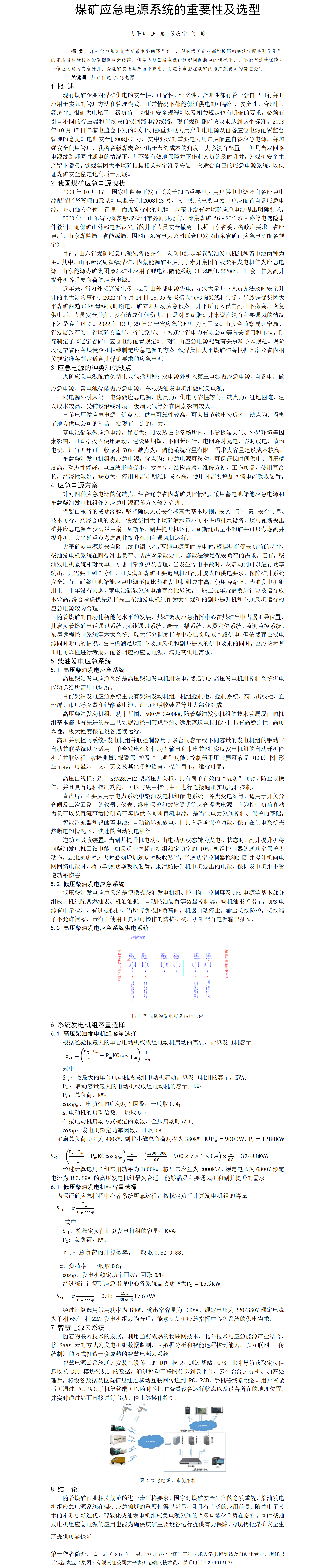 第60屆等級獎?wù)撐?--煤礦應急電源系統(tǒng)的重要性及選型