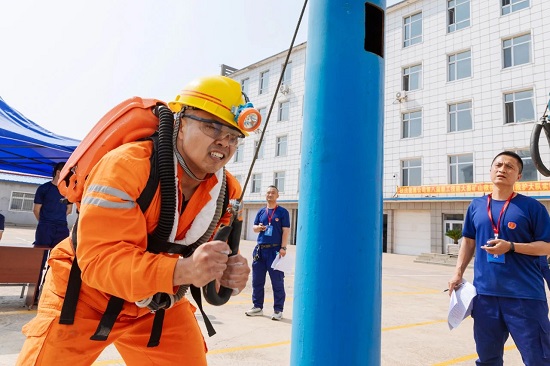 在27日進(jìn)行的礦山救護(hù)工工種比賽現(xiàn)場(chǎng),記者更是感受到了緊張而激烈的比賽氣氛。15名選手精神抖擻、斗志昂揚(yáng),進(jìn)行了連續(xù)體能測(cè)試和呼吸器席位操作比賽,特別是在連續(xù)體能測(cè)試中,選手們完成了爬繩、引體向上、佩戴呼吸器、負(fù)重奔跑等高強(qiáng)度項(xiàng)目,彰顯了他們?cè)鷮?shí)的業(yè)務(wù)功底和頑強(qiáng)的拼搏精神。同日,還在曉明礦地面工業(yè)廣場(chǎng)和北三205綜采工作面進(jìn)行了礦井軌道工、采煤機(jī)司機(jī)工種比賽。