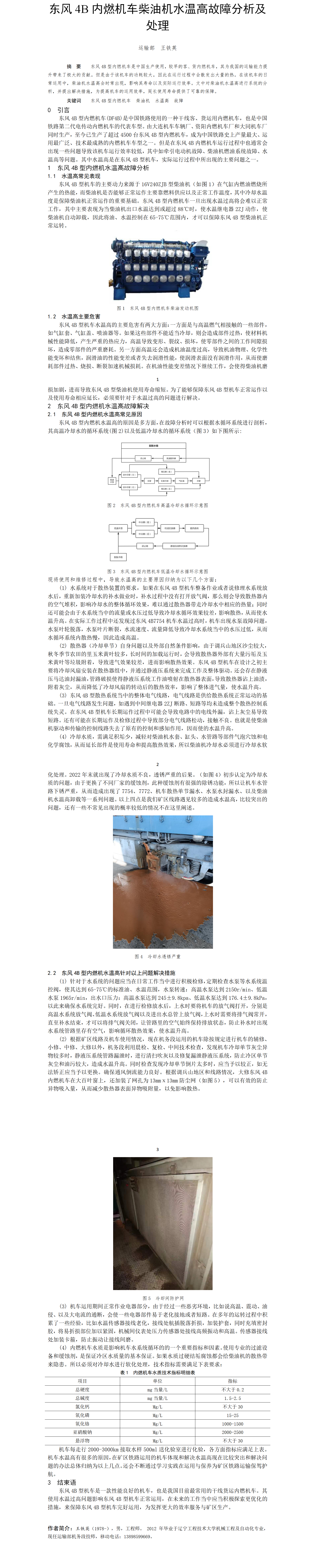 第60屆等級(jí)獎(jiǎng)?wù)撐?--東風(fēng)4B內(nèi)燃機(jī)車柴油機(jī)水溫高故障分析及處理