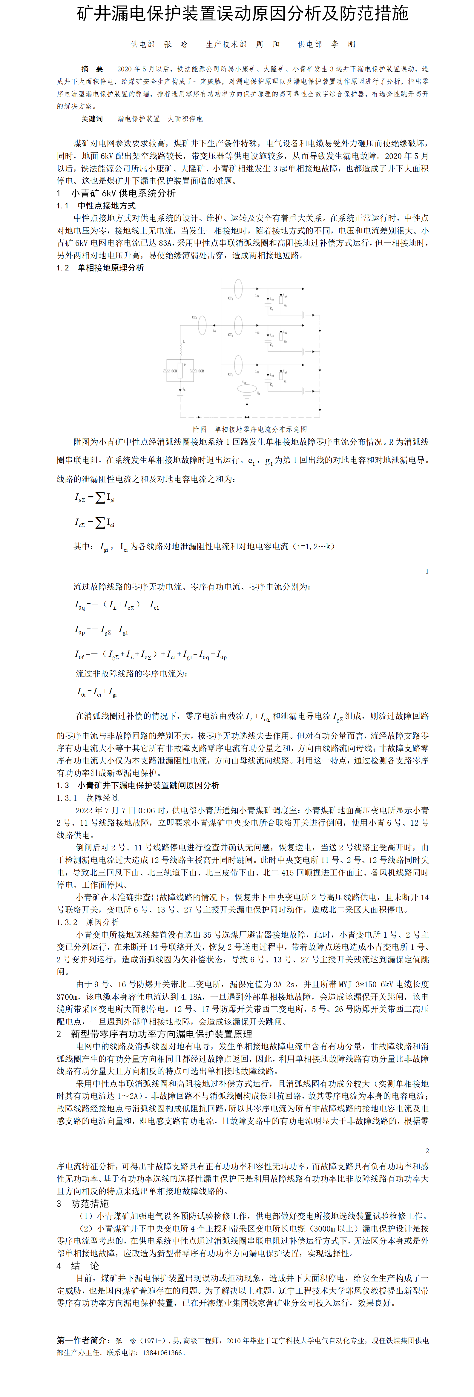 第60屆等級獎(jiǎng)?wù)撐?--礦井漏電保護(hù)裝置誤動(dòng)原因分析及防范措施
