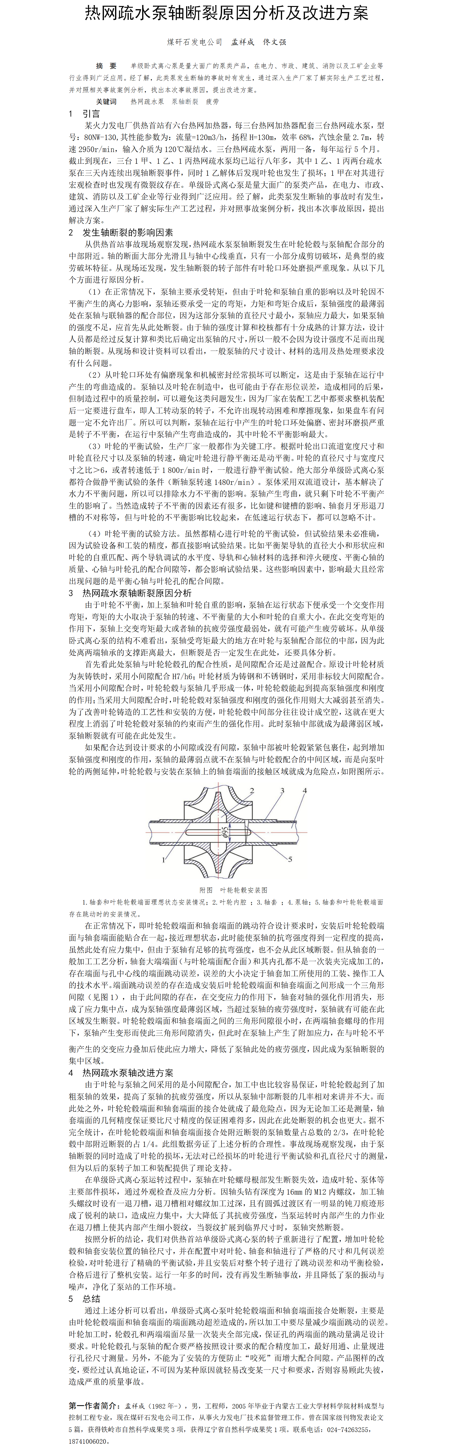 第60屆等級獎?wù)撐?--熱網(wǎng)疏水泵軸斷裂原因分析及改進方案