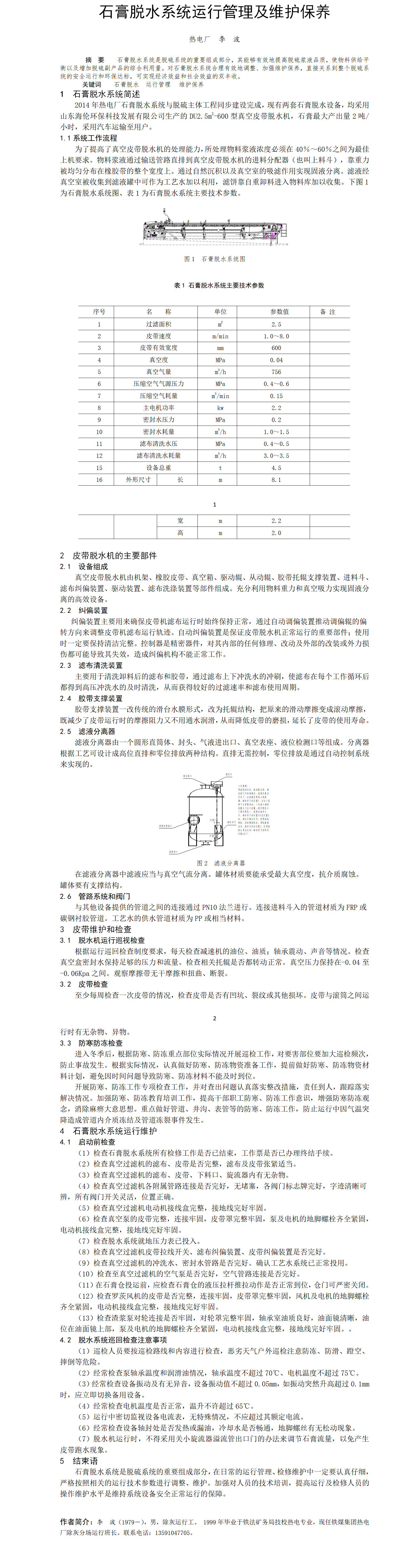 第60屆等級獎?wù)撐?--石膏脫水系統(tǒng)運行管理及維護(hù)保養(yǎng)