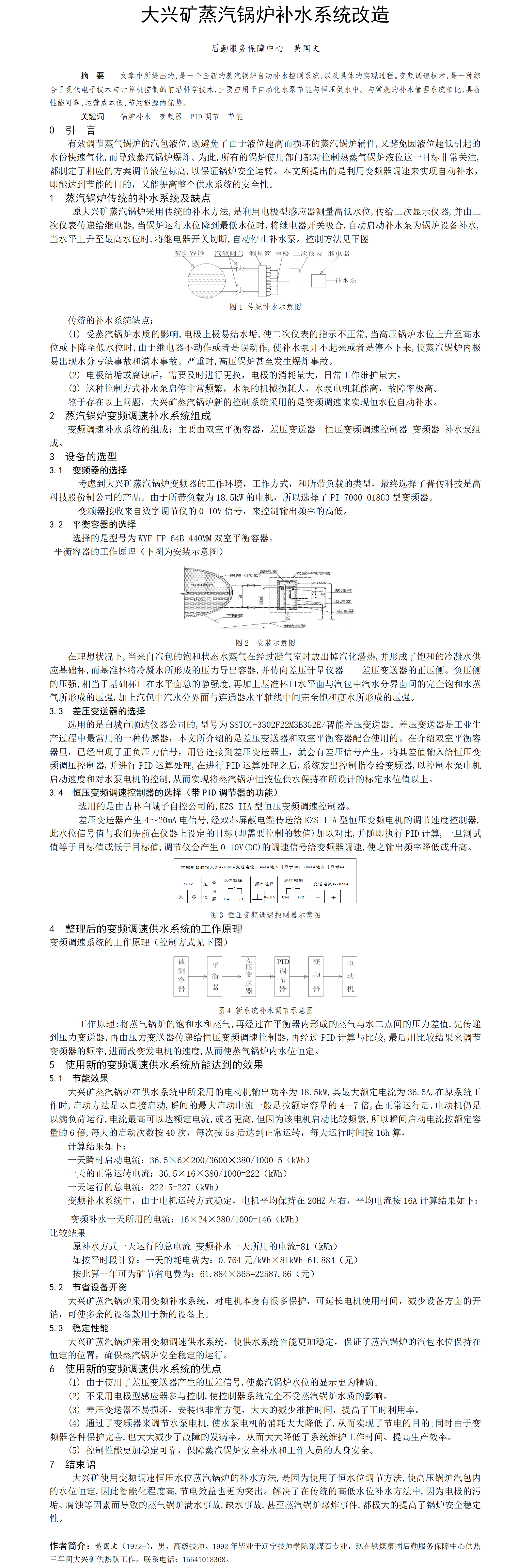 第60屆等級獎?wù)撐?--大興礦蒸汽鍋爐補水系統(tǒng)改造