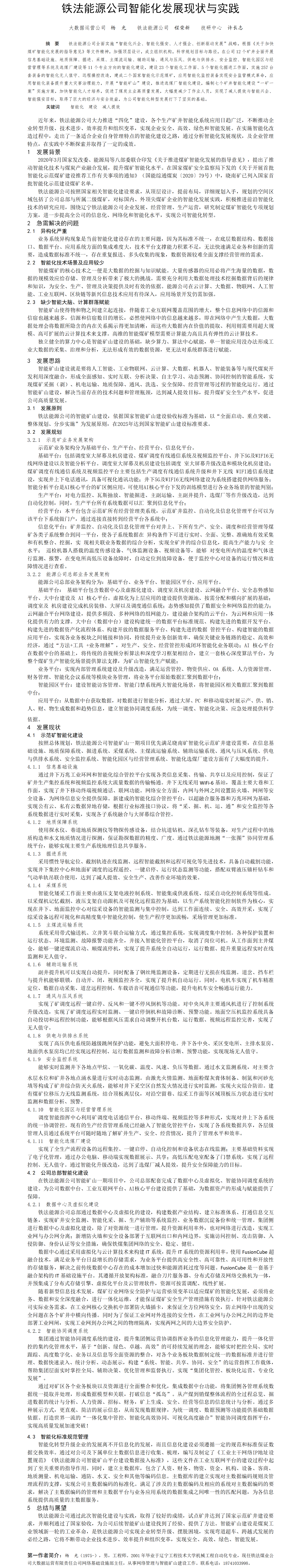 第60屆等級獎?wù)撐?--鐵法能源公司智能化發(fā)展現(xiàn)狀與實踐