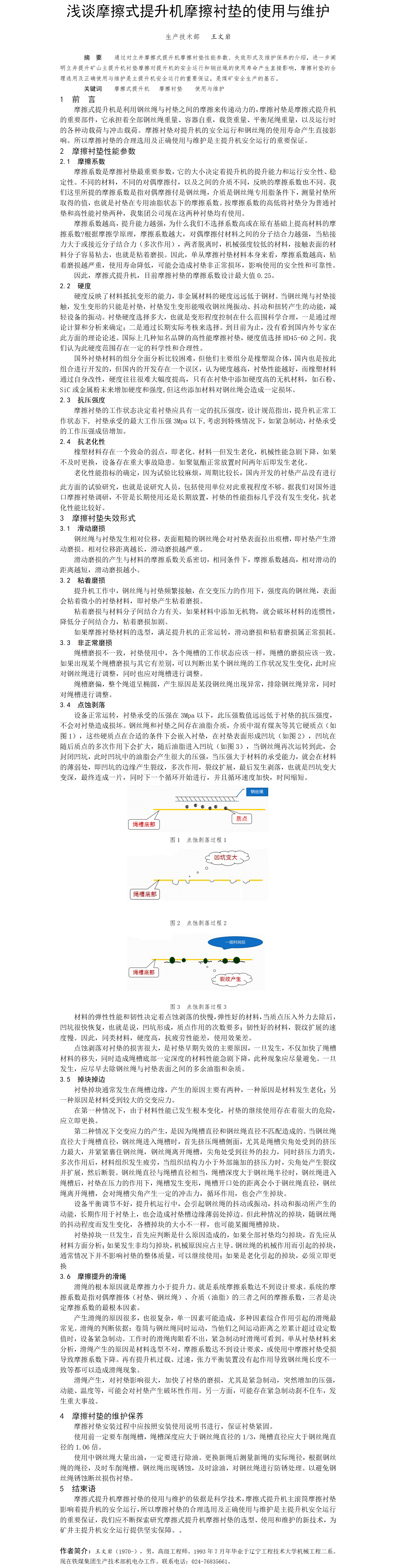 第60屆等級(jí)獎(jiǎng)?wù)撐?--淺談摩擦式提升機(jī)摩擦襯墊的使用與維護(hù)