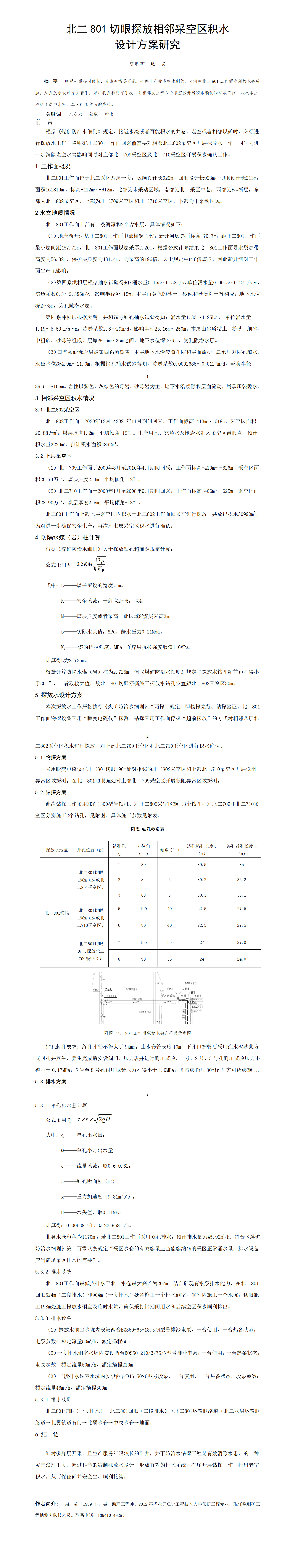 第61屆等級(jí)獎(jiǎng)?wù)撐?--北二801切眼探放相鄰采空區(qū)積水設(shè)計(jì)方案研究