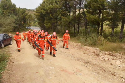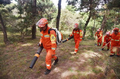 撲火隊(duì)員集結(jié)后,便立刻全副武裝奔赴模擬火災(zāi)現(xiàn)場。大家使用風(fēng)力滅火機(jī)、滅火水槍、防火2號(hào)等撲火裝備,沉著冷靜、緊張有序地在火點(diǎn)周圍對林火進(jìn)行壓制。明火撲滅后,隊(duì)員們對現(xiàn)場進(jìn)行了全面檢查,嚴(yán)防死灰復(fù)燃。隨后,現(xiàn)場安排專人留守看護(hù),其他人員有序撤離。