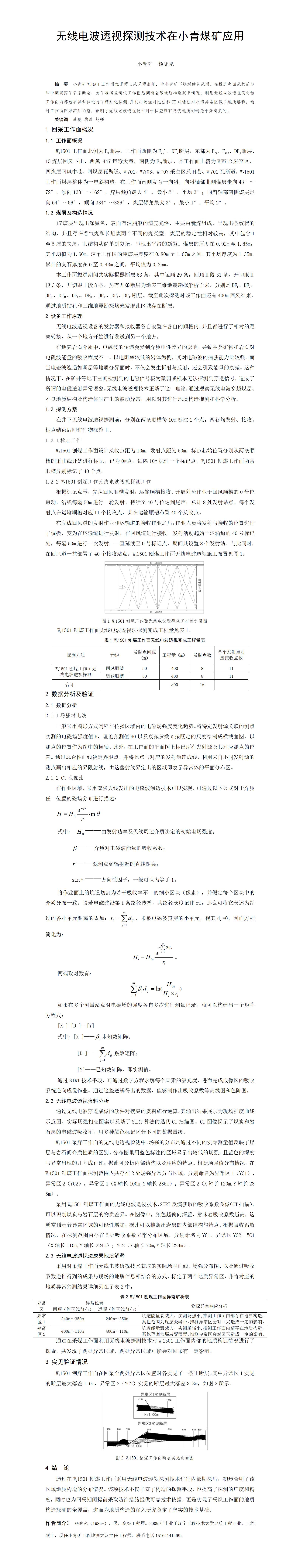 第61屆等級(jí)獎(jiǎng)?wù)撐?--無(wú)線電波透視探測(cè)技術(shù)在小青煤礦應(yīng)用