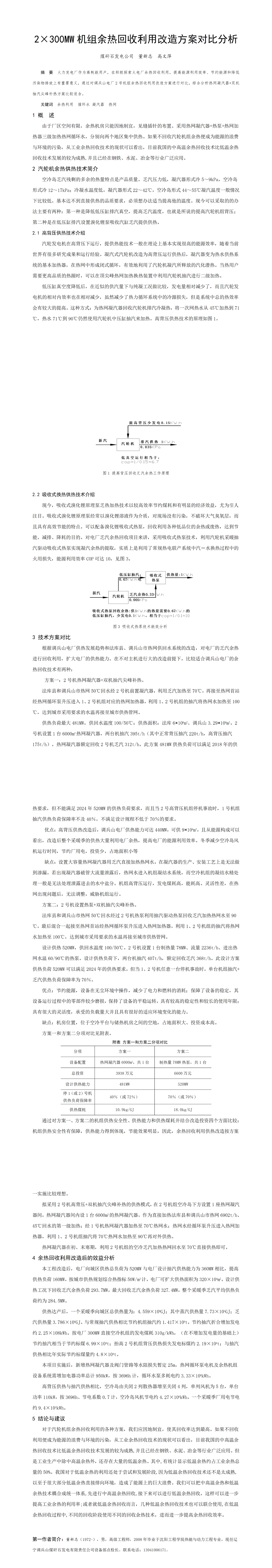 第61屆等級獎?wù)撐?--2×300MW機(jī)組余熱回收利用改造方案對比分析