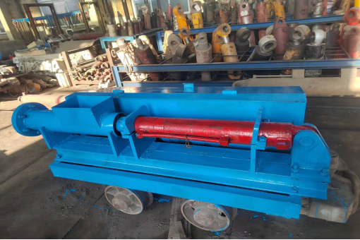 一是驅(qū)動(dòng)系統(tǒng)改造,將原有電機(jī)驅(qū)動(dòng)改為液壓驅(qū)動(dòng),采用泵站和液壓馬達(dá)代替電機(jī),依托液壓千斤頂?shù)囊后w不可壓縮性、活塞運(yùn)動(dòng)等原理,實(shí)現(xiàn)力的精準(zhǔn)傳遞,大幅提升設(shè)備出力穩(wěn)定性,降低故障率和使用成本;二是入料出料機(jī)構(gòu)優(yōu)化,用風(fēng)動(dòng)千斤頂驅(qū)動(dòng)錐形壓塊封堵進(jìn)料口,壓實(shí)黃泥減少濺出,同時(shí)將入料口上移20mm、優(yōu)化切入角,延長(zhǎng)出料嘴并降低內(nèi)壁粗糙度,確保炮泥成型率和尺寸達(dá)標(biāo);三是移動(dòng)方式升級(jí),采用集成式設(shè)計(jì),將炮泥機(jī)、泥胚箱、成品炮泥箱一體化安裝于行走小車上,便于工作面內(nèi)取料、存料和運(yùn)輸;四是結(jié)構(gòu)簡(jiǎn)化,將原渦輪式出泥結(jié)構(gòu)改為活塞式,強(qiáng)度更高、不易變形,降低維護(hù)難度,延長(zhǎng)設(shè)備使用壽命。
