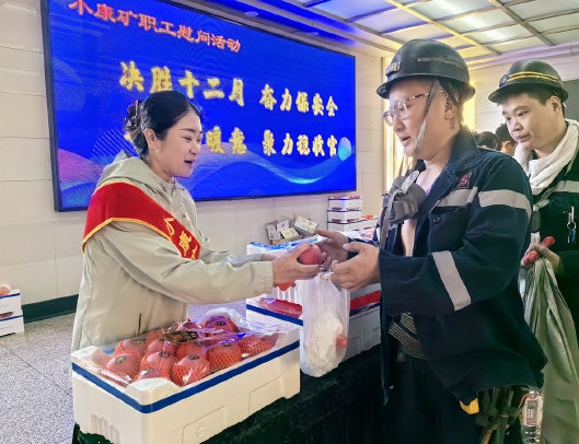 近日,小康礦在副井口開展了“決勝十二月奮力保安全”主題慰問活動。女工協(xié)管員為每一位入井職工細心系上象征平安的白毛巾,遞上寓意“平安順遂”的蘋果和牛奶等慰問品,并反復叮囑入井職工在年末攻堅的關(guān)鍵時期,要時刻繃緊安全生產(chǎn)弦,嚴格遵守操作規(guī)程,規(guī)范作業(yè),確保全年安全生產(chǎn)目標圓滿收官。 楊宇 攝