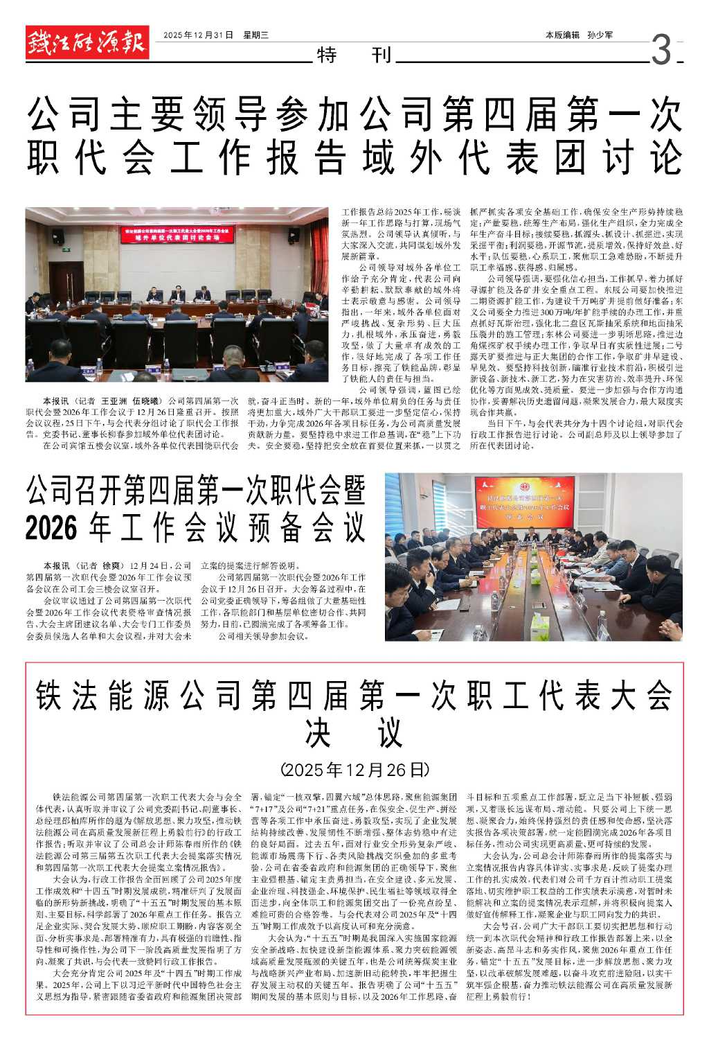鐵法能源公司第四屆第一次職工代表大會…