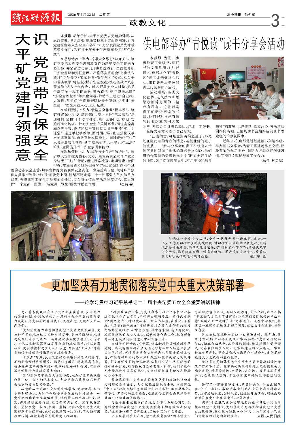 大平礦黨建引領(lǐng)強(qiáng)意識 黨員帶頭保安全