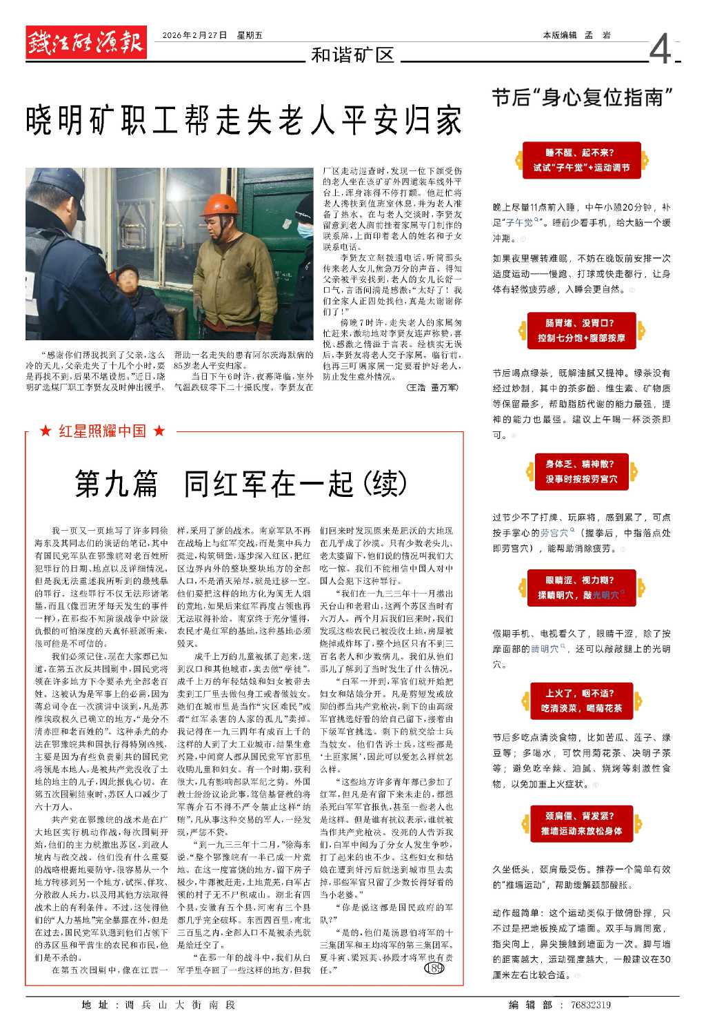 曉明礦職工幫走失老人平安歸家